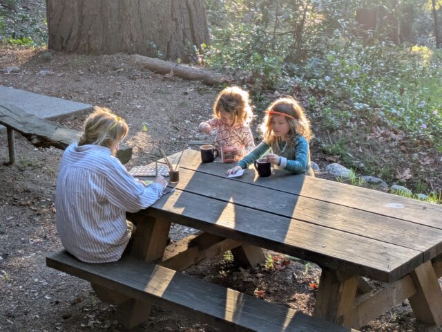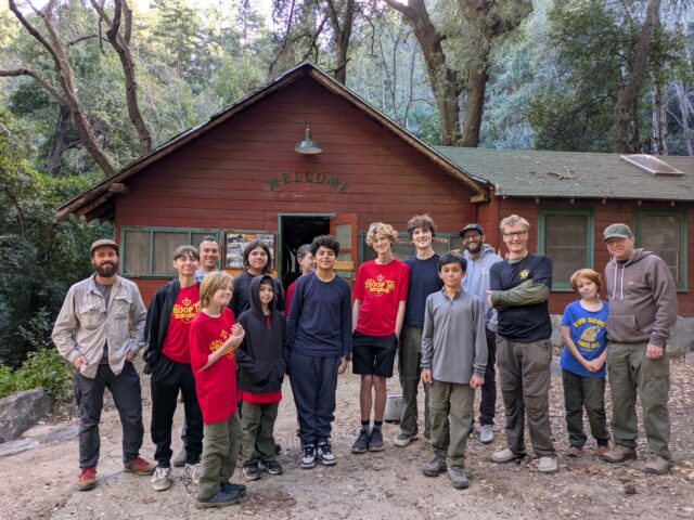 However, capacity is not the definitive number: rainfall is. The ‘green ceiling’ of the Camp is how much water it can get, store, treat, use and manage after use. So far, the San Gabriels continue to show a good supply of water after several years of wet weather; but it still has to make it into the Camp’s storage system at a rate that is renewable compared to use. Recently, 15 guests in Camp drained one full water tank in 20 hours, but their dishes—even the kids’ sticky pancake ones— were really clean, thank you!