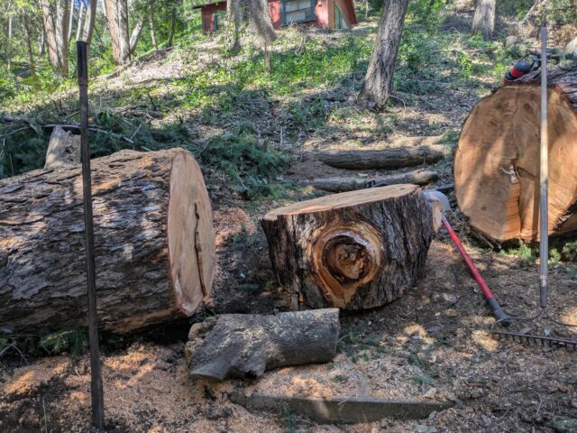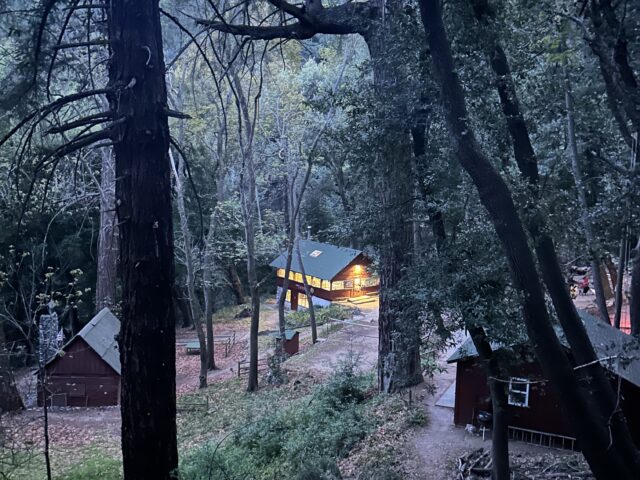 The Bigcone Spruce of the upper Canyon make a ‘cathedral of trees’ in and around the Camp, drawing hikers and guests to stand in awe and admire. But they are also kinda lousy wood, prone to growing big and brittle and dropping monster branches in modest storms. That has been true since Thanksgiving last year on through Valentine’s Day this year.